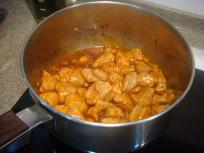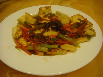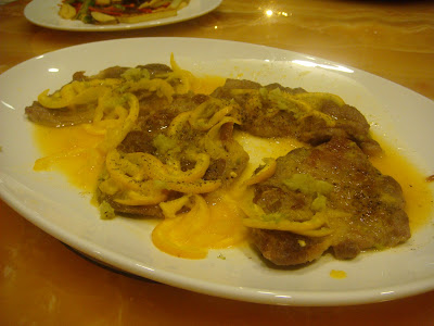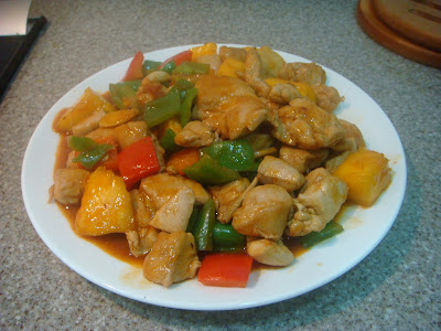 上面的那鍋雞塊,加入芒果,青椒,添了一些五彩的顏色,酸酸甜甜的,很香喔!