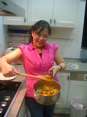 媽媽添購了完整的廚具後,除了偶爾炒面炒飯之外,遲遲沒有機會做一桌菜。官方說法是,太久沒煮菜了,所以廚藝有些退步,要慢慢練習。上回爸媽去看鍋子時,媽媽邀請陳小姐來家裡煮菜,也向陳小姐請教廚藝。陳小姐平常就經常在店裡現煮給客人看,以展示鍋子的優點,所以手藝很好呢!